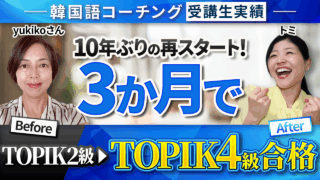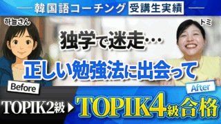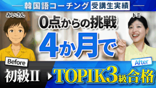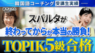 トップページ 2019.01.122025.02.22 最新記事初級韓国語講座中級韓国語講座受講生の声 【韓国語勉強法】ゼロからペラペラまでの最短ルートを教えます! 【TOPIK4級合格】10年ぶりの再スタート!3カ月でTOPIK2級→TOPIK4級 【TOPIK3級合格】0点からの挑戦!4か月でTOPIK3級合格! トリリンガルのトミ韓国留学奨学金の授与式に参加しました! 【TOPIK4級合格】独学で迷走…正しい勉強法に出会ってTOPIK4級合格! 【TOPIK6級合格】スパルタ卒業後も毎日2時間勉強!TOPIK6級合格! 【TOPIK5級合格】スパルタが終わってからが本当の勝負! 【超有料級】韓国語の初級文法をゼロから全て学べる完全講義! 【TOPIK4級レベル】ハリウッド女優も入会!2か月で0から中級マスター! 【TOPIK6級合格】未経験から쓰기74点⁈ 中級Ⅱ→ TOPIK6級一発合格! 【TOPIK3級合格】未経験から一発合格!初級Ⅱ→ TOPIK3級合格! 【TOPIK5級合格】合格通知を見て号泣!TOPIK5級一発合格! 【TOPIK3級合格】50代の快挙!たった4か月で初級Ⅰ→ TOPIK3級合格! 【TOPIK4級合格】60歳直前でも4か月で TOPIK3級からTOPIK4級合格! 【TOPIK4級合格】4カ月でTOPIK1級からTOPIK4級一発合格! 【TOPIK5級合格】50代でも韓国語は伸びる!初級レベル→TOPIK5級合格! 【TOPIK4級合格】20年間の停滞を超えて 4か月でTOPIK4級一発合格! 【TOPIK6級合格】留学せずに仕事しながらTOPIK6級合格! 【1時間でマスター】韓国語の助詞27選|使い方と例文付きで徹底解説 【TOPIK6級合格】TOPIK作文スパルタ史上最高得点! 【TOPIK4級合格】韓国人の彼氏とも韓国語で話せるようになった! 【TOPIK4級合格】スパルタ最年少!たった4ヶ月でTOPIK4級合格! 【TOPIK6級合格】まさかの国産トリリンガル!TOPIK6級合格! 【TOPIK4級合格】4カ月で成績5倍UP↑ TOPIK4級一発合格! 1 2 3 … 18 › 【初級韓国語講座 第1回】準備講座:無料で学べる本格ハングル講座スタート! 【初級韓国語講座 第2回】自己紹介しよう! -는/은、-입니다 【初級韓国語講座 第3回】こそあど言葉、-이/가、-이/가 아닙니다 【初級韓国語講座 第4回】ですます文! -ㅂ니다/습니다、-고 【初級韓国語講座 第5回】動詞・形容詞の否定文:-지 않습니다 、안 初級韓国語講座【第1回~5回】文法テスト 【初級韓国語講座 第6回】口語体の -예요/이에요、分かち書き 【初級韓国語講座 第7回】해요体の集中講義!活用・変則を完全網羅! 【初級韓国語講座 第8回】-을/를、-네요、漢数詞 【初級韓国語講座 第9回】-와/과、固有数詞 【初級韓国語講座 第10回】現在進行形 -고 있어요、-(이)랑 初級韓国語講座【第6回~10回】文法テスト 【初級韓国語講座 第11回】過去形 -이었어요/였어요 、ですます -이요/요 【初級韓国語講座 第12回】動詞・形容詞の過去形 -ㅆ어요/ㅆ습니다 、-도 【初級韓国語講座 第13回】未来形 -(으)ㄹ 거예요/(으)ㄹ게요 【初級韓国語講座 第14回】-(으)ㄹ까요?、-(으)ㄹ까 봐、-(으)ㄹ까 하다 【初級韓国語講座 第15回】-(으)ㄹ래요、-지요 初級韓国語講座【第11回~15回】文法テスト 【初級韓国語講座 第16回】ー겠어요 と未来形総まとめ 【初級韓国語講座 第17回】敬語の助詞、-(으)십니다、-(으)세요 【初級韓国語講座 第18回】-(이)십니다/세요、-(으)십시오、名詞の敬語 【初級韓国語講座 第19回】-한테/한테서、敬語の過去形 【初級韓国語講座 第20回】-(으)로、-주세요/주시겠어요 初級韓国語講座【第16回~20回】文法テスト 【初級韓国語講座 第21回】-아/어 주다, 주시다, 드리다, 보다, 보이다 【初級韓国語講座 第22回】-아/어서、-(으)ㄹ 수 있어요/없어요 【初級韓国語講座 第23回】(으)니까と못を学ぼう! 【初級韓国語講座 第24回】-지만、-고 싶어요、-고 싶어 해요 【初級韓国語講座 第25回】-(으)면、-(으)면서、-(으)러 初級韓国語講座【第21回~25回】文法テスト 【初級韓国語講座 第26回】-습니다만、-아/어도 돼요? 【韓国語初級講座 第27回】-(으)려고 하다、-(으)려고요、-아/어야 하다 【初級韓国語講座 第28回】動詞の現在連体形 -는、-는 게 좋다 【初級韓国語講座 第29回】-(으)ㄴ、-적이 있다/없다 、-후에/다음에 【初級韓国語講座 第30回】動詞の未来連体形、-ㄹ 것 같다 初級韓国語講座【第26回~30回】文法テスト 【初級韓国語講座 第31回】形容詞の連体形、-잖아요、-군요 【初級韓国語講座 第32回】名詞の現在連体形 -인、完了状態の継続 -아/어 있다 【初級韓国語講座 第33回】-는데 、-았/었으면 좋겠다 【初級韓国語講座 第34回】-게、-는/(으)ㄴ 편이다 【初級韓国語講座 第35回】否定形 -지 말고, -지 마세요, -지 못하다 初級韓国語講座【第31回~35回】文法テスト 【初級韓国語講座 第36回】-(으)ㄹ 때、-았/었을 때、-(으)ㅂ시다 【初級韓国語講座 第37回】-(으)ㄴ 지、-아/어지다、-거나 【初級韓国語講座 第38回】-기 전에、-기로 하다 【初級韓国語講座 第39回】-때문에、-기 때문에、-이/가 되다 【初級韓国語講座 第40回】-기 쉽다/어렵다、 -기 위해서 初級韓国語講座【第36回~40回】文法テスト 【初級韓国語講座 第41回】-(이)라고 하다、-냐고 하다 【初級韓国語講座 第42回】間接話法 -(ㄴ/는)다고 하다、-(ㄴ/는)대요 【初級韓国語講座 第43回】間接