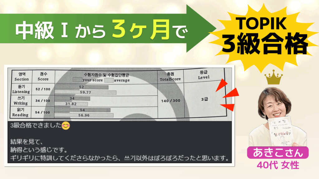 51歳女性が 初級Ⅰから4ヶ月で TOPIK3級合格!