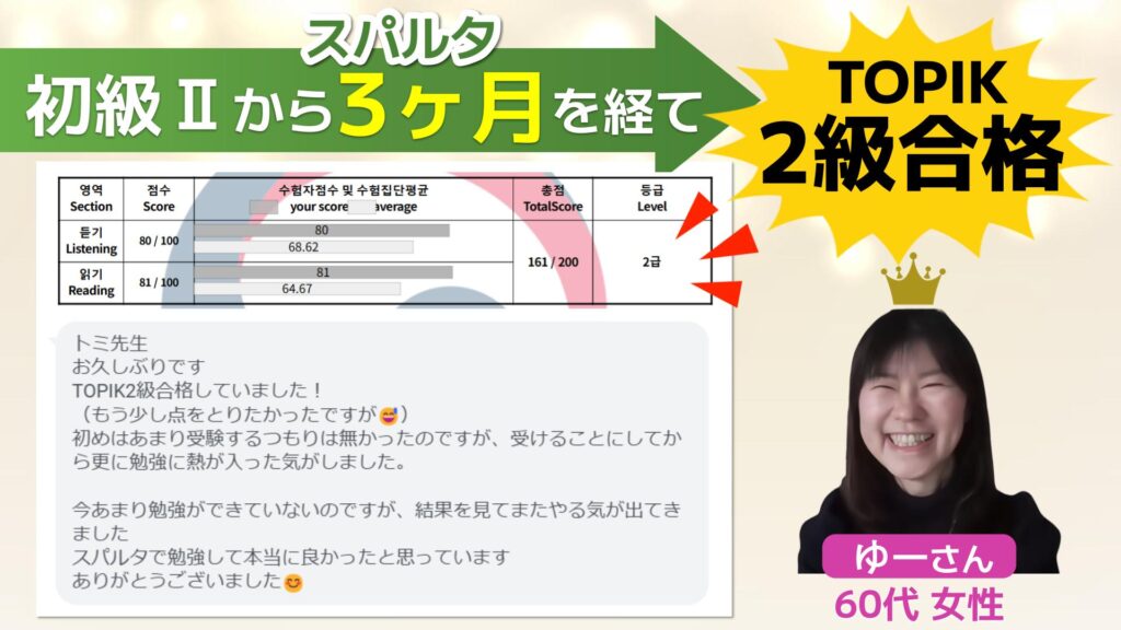60代女性が 初級Ⅱから4ヶ月で TOPIK2級合格!