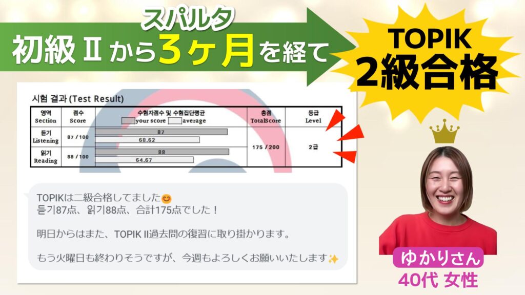 40代女性が スパルタ2ヶ月を経て 前回より31点upで TOPIK6級合格!