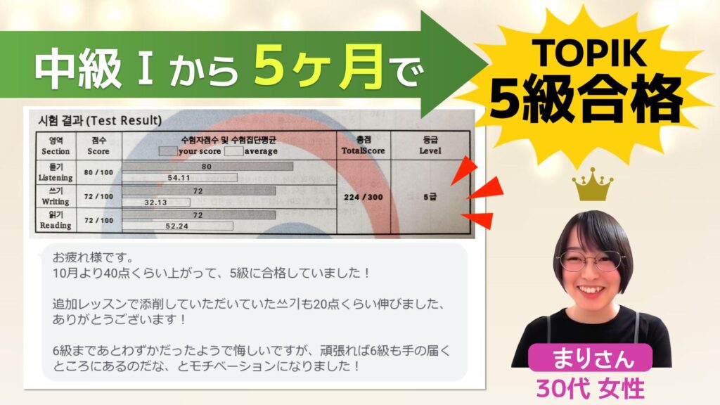 50代女性が1ヶ月で28点UPで TOPIK5級合格