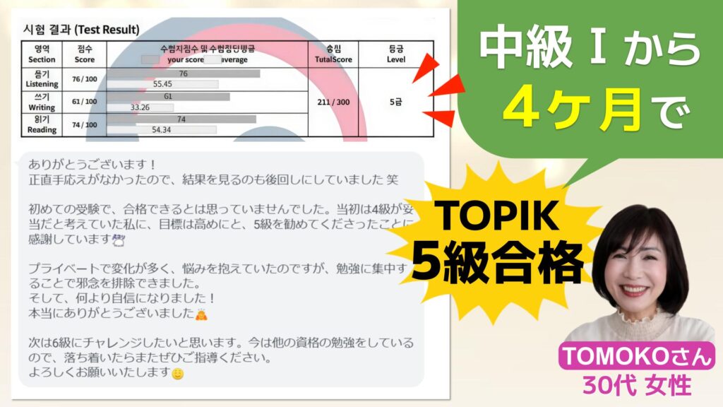 65歳女性が 中級Ⅰから3ヶ月で TOPIK5級合格!