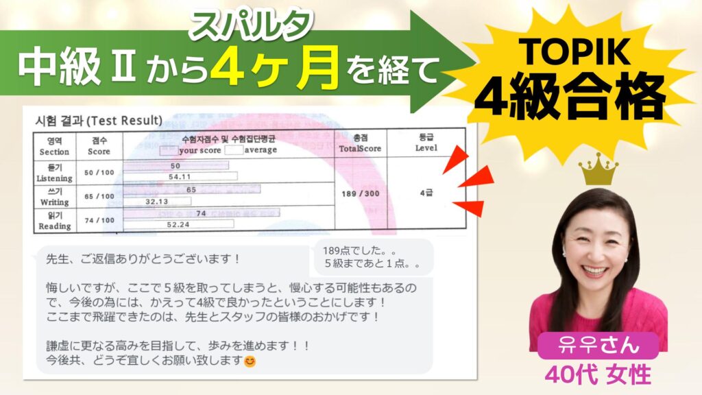 40代女性が スパルタ卒業後 TOPIK4級合格
