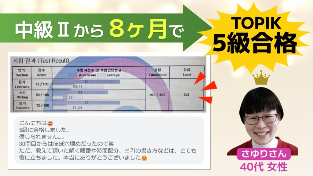 40代女性が TOPIK3級から3ヶ月で TOPIK5級合格!
