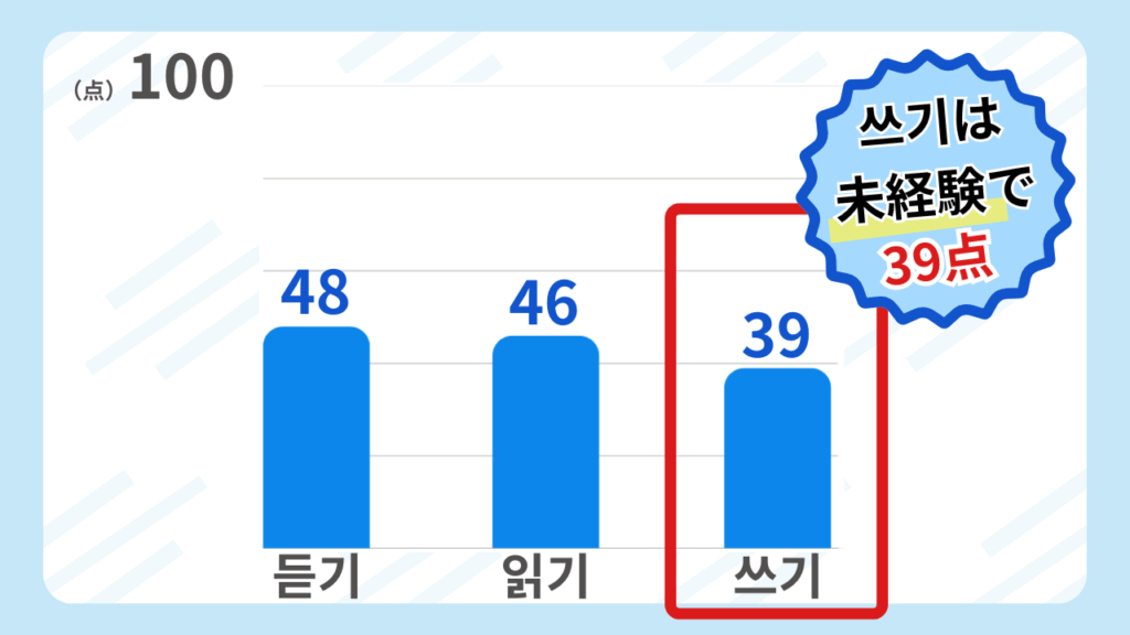 쓰기に関していえば、未経験からスタートし、平均37点の試験で39点を叩き出しています!!