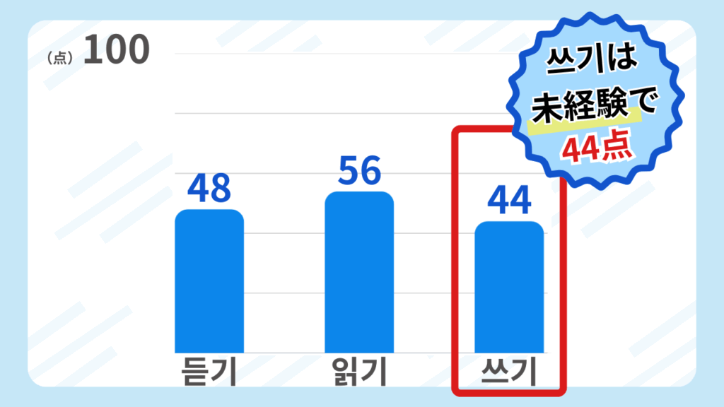 쓰기に関していえば、未経験からスタートし、平均37点の試験で44点を叩き出しています!!