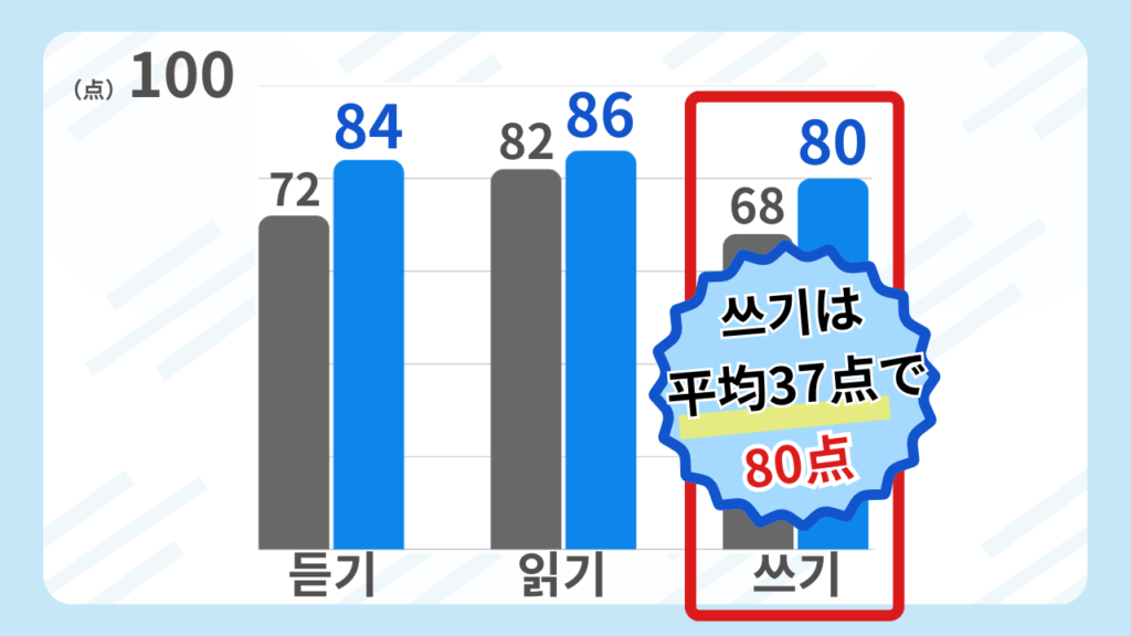 쓰기に関していえば、平均37点の試験で 80点を叩き出しています!!