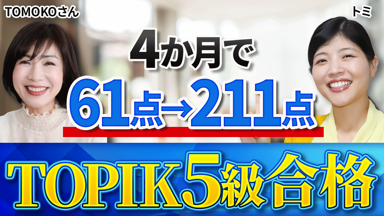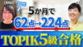 実績の方の結論から言うと、TOMOKOさんは、4か月でTOPIK 5級に堂々と合格されています。